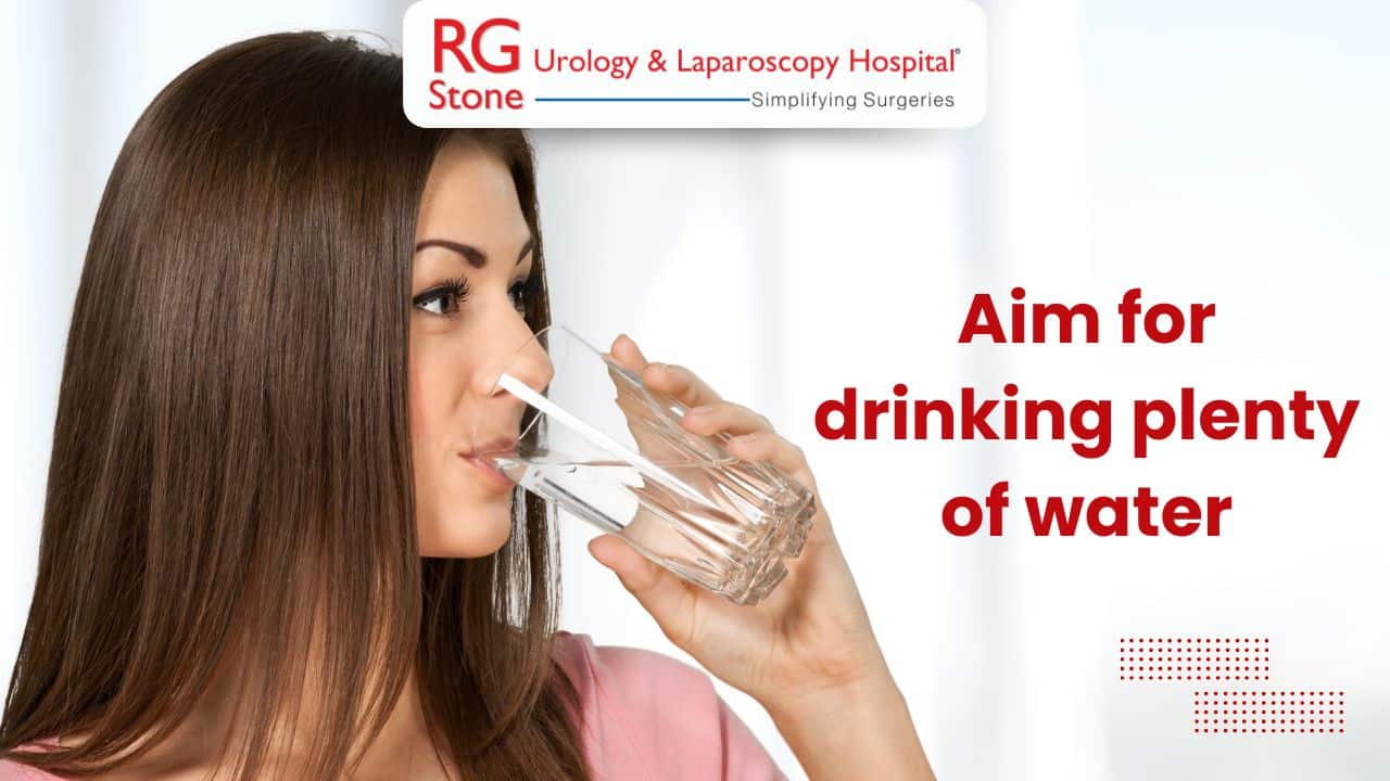 You should aim for at least 8 -10 glasses of water a day to be certain that you are capable of eliminating the substances that create stones in the kidney. This step is of great help in ensuring that you are drinking enough water to reduce salt or oxalate that is present in the urine.